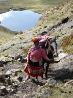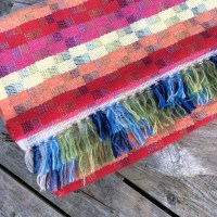 I took Peru #1 off the loom yesterday: I have named this scarf Lucia after the Peruvian woman who led the rescue horse on our trek. Her colourful clothes and hat standing out in contrast to the tree-less rocky environment. She walked and skipped easily up the 5,000m passes as I climbed steadily and slowly.