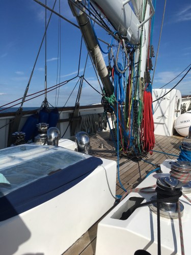 Now embarking on a sailing trip with The Ocean Youth Trust. A hopeful return woven into a life time of sailing. Could I hold myself together? Sadness and tears close. Reconnecting joy and freedom from years past. Nervous. Small bunks. Big winches. Big boat. New crew. Nervous.